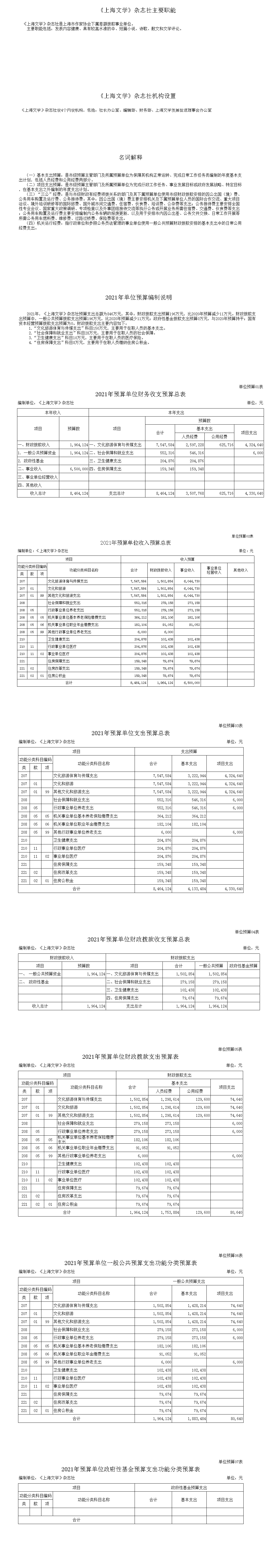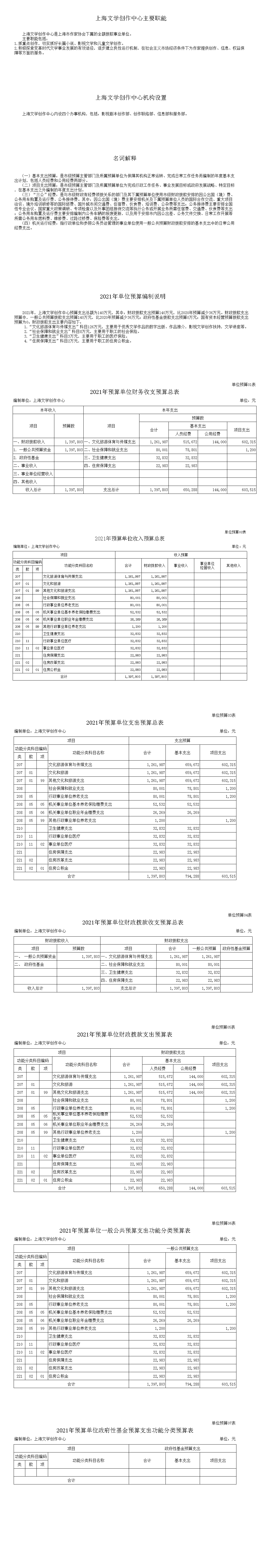 目 錄 第一部分 上海文學創作中心概況 一、主要職能 二、機構設置 第二部分 上海文學創作中心2020年度決算表 一、收入支出決算總表 二、收入決......