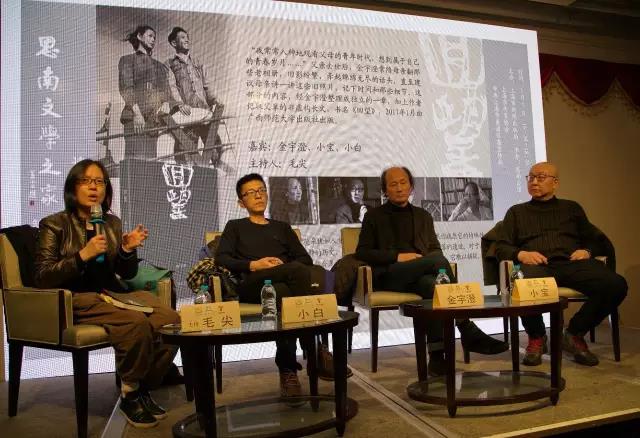 從左至右為毛尖、小白、金宇澄、小寶 細潤的雨,總有辦法把思南讀書會的讀者與嘉賓連接得更為緊密。室外,頂著傘有序排隊的讀者;室內,濟濟一堂,工作人員忙著安排加座,即使這樣,還有許多讀者是站著的。 滬上三男一女文壇高......
