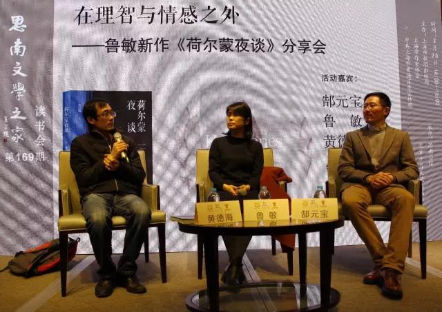 從左至右為黃德海、魯敏、郜元寶 幾個人坐下,一個接著一個,坦誠地分享自己曾經不可言說的秘密,是魯敏新書《夜談荷爾蒙》的最初動因。3月25日下午,復旦大學中文系教授郜元寶、作家魯敏和《思南文學選刊》副主編黃德海做客第......