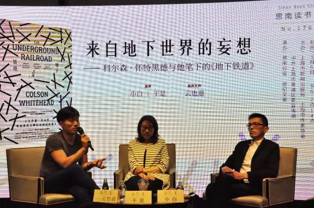 從左至右為云也退、 于是 、小白 5月6日下午兩點,作家小白、于是、云也退做客第176期思南讀書會,嘉賓們圍繞《地下鐵道》這部同時斬獲普利策獎、美國國家圖書獎的作品展開精彩對談,從小說的主題、現實意義、人物塑造等方面對這......
