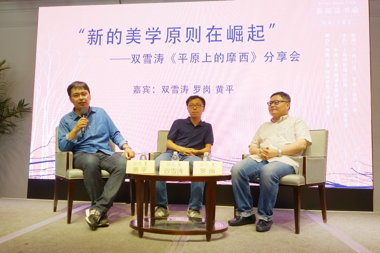 從左至右為黃平、雙雪濤、羅崗 5月27日下午三點,80后青年作家雙雪濤攜中短篇小說集《平原上的摩西》做客思南文學之家,華東師范大學教授羅崗、黃平圍繞此作與作家展開對談,從文學的角度討論小說創作中所展現的“新的美學原則......