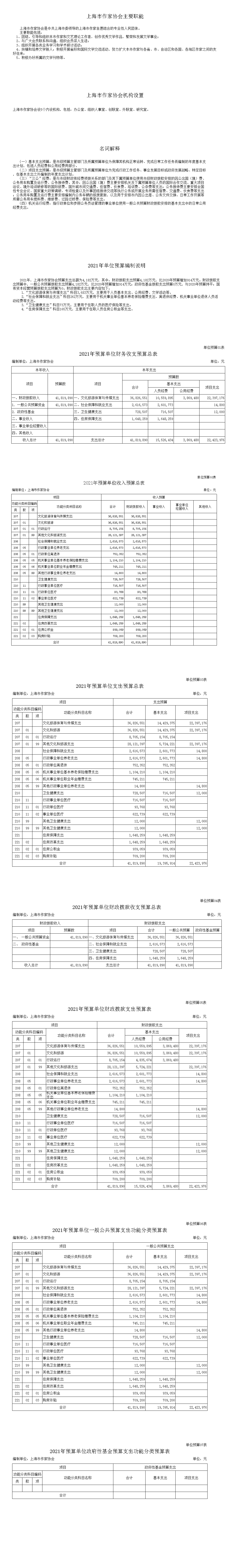 上海市作家協會2021年度部門預算