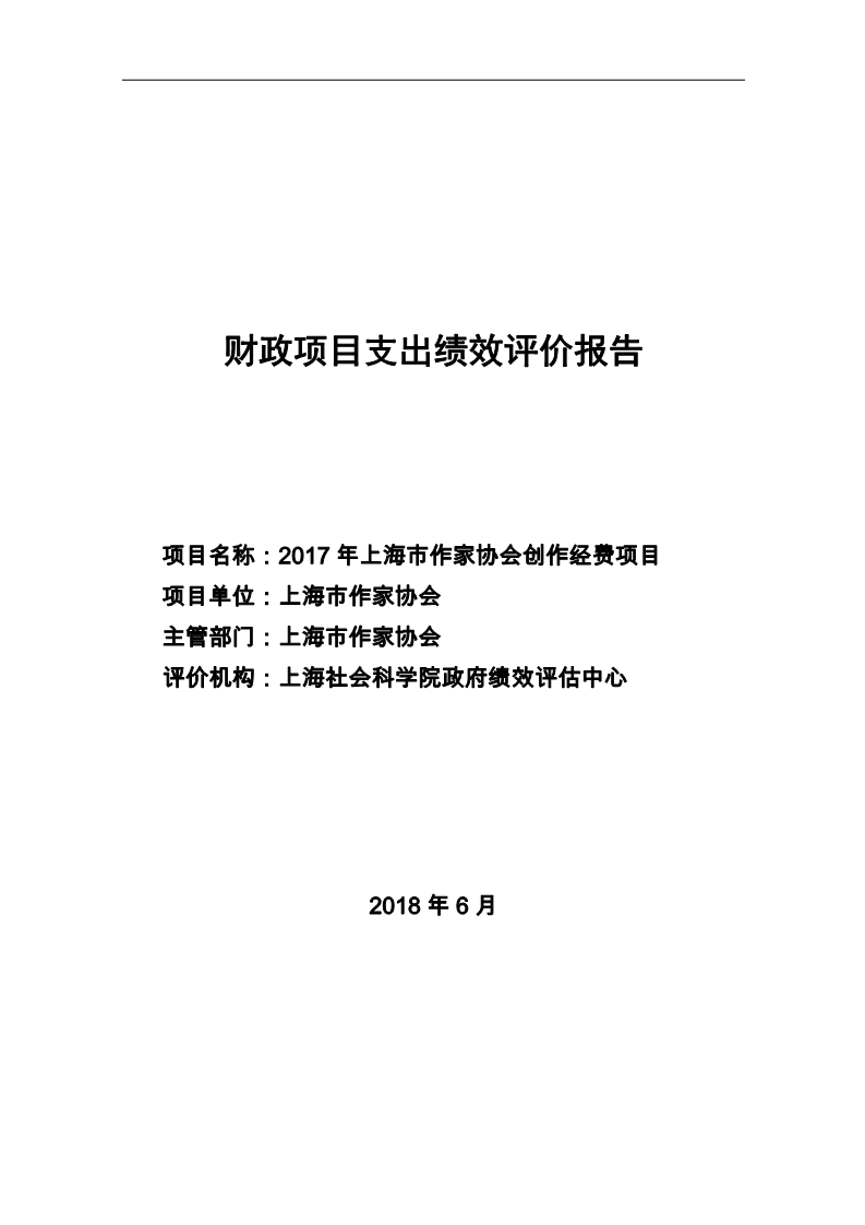 2017年上海市作協(xié)創(chuàng)作經(jīng)費(fèi)項(xiàng)目績(jī)效評(píng)價(jià)報(bào)告