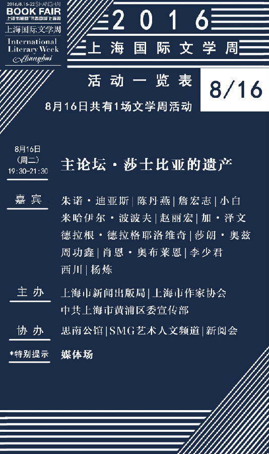 一年一度的上海書展暨“書香中國”上海周又將與讀者們見面了,今年的上海書展有什么新亮點?讓我們提前一探究竟。 2016年第十三屆上海書展將于8月17日至23日在上海展覽中心舉行,門票日場10元,夜場5元。今年將繼續推出七天夜場(......