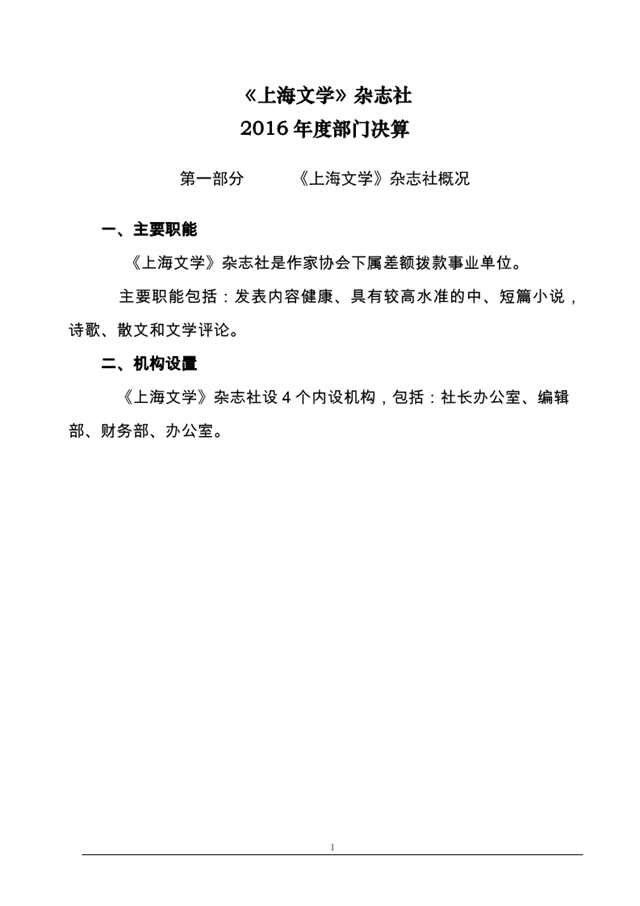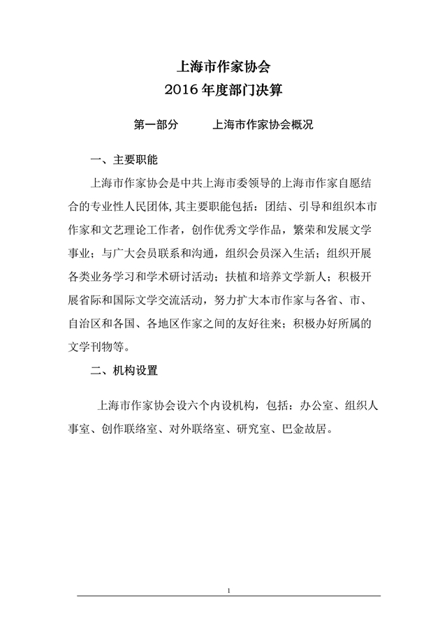 第一部分 上海市作概況家協會 一、主要職能 上海市作家協會是中共上海市委領導的上海市作家自愿結合的專業性人民團體,其主要職能包括:團結......