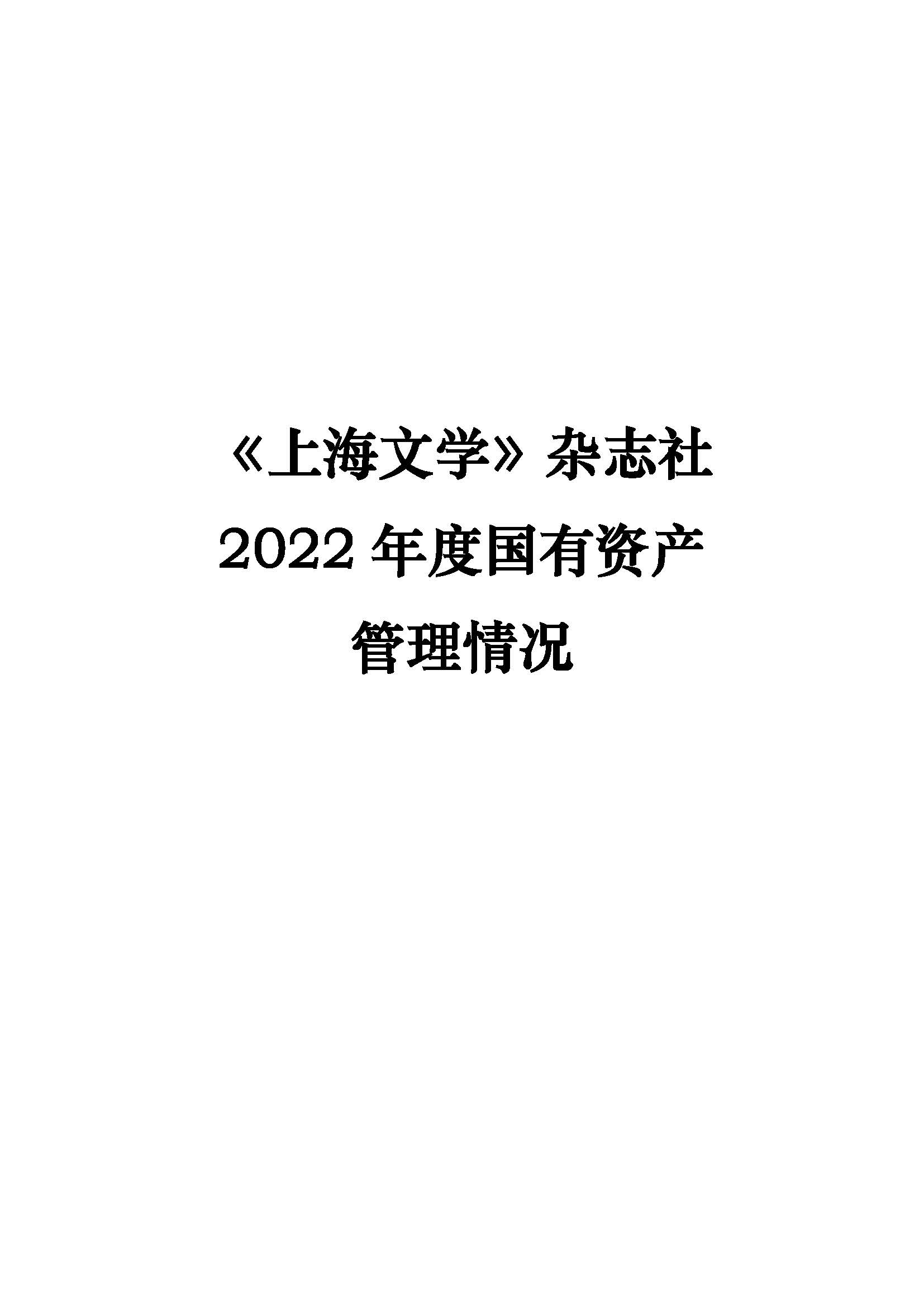 《上海文學》雜志社2022年度國有資產(chǎn)管理情況