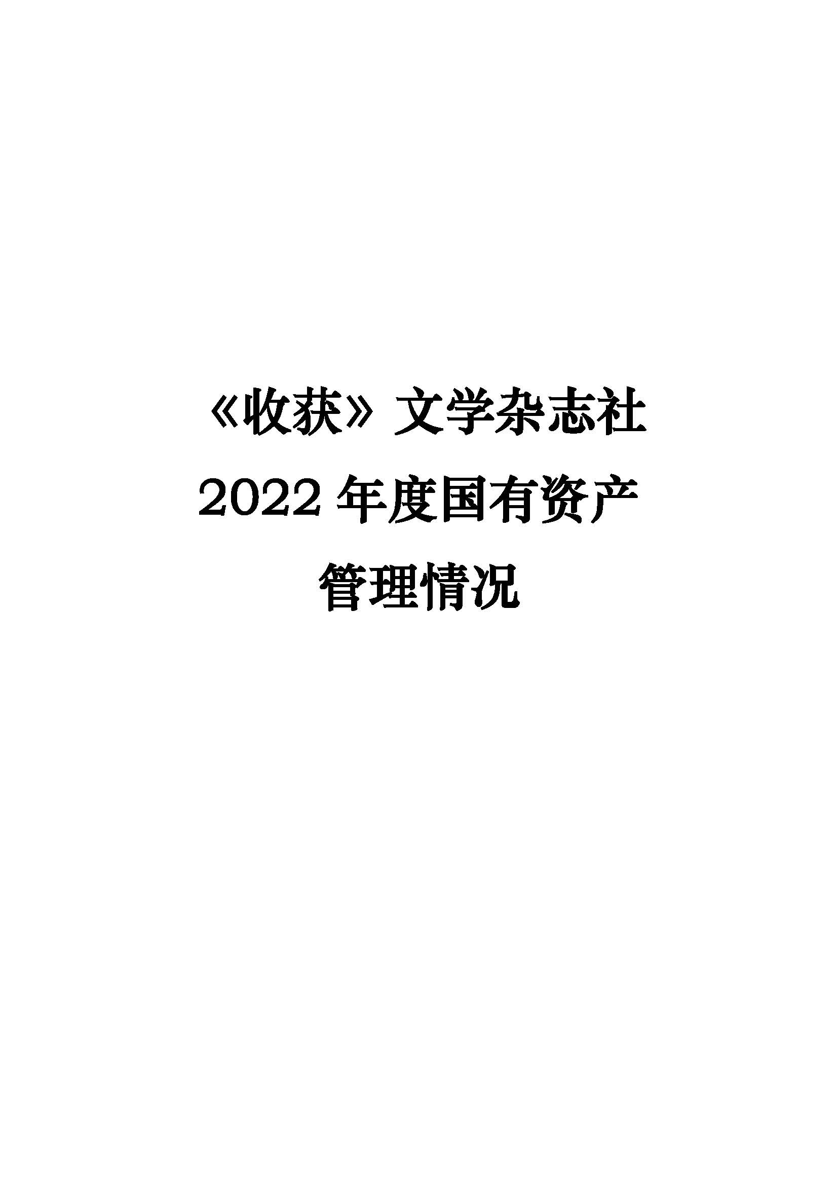 《收獲》雜志社2022年度國有資產(chǎn)管理情況