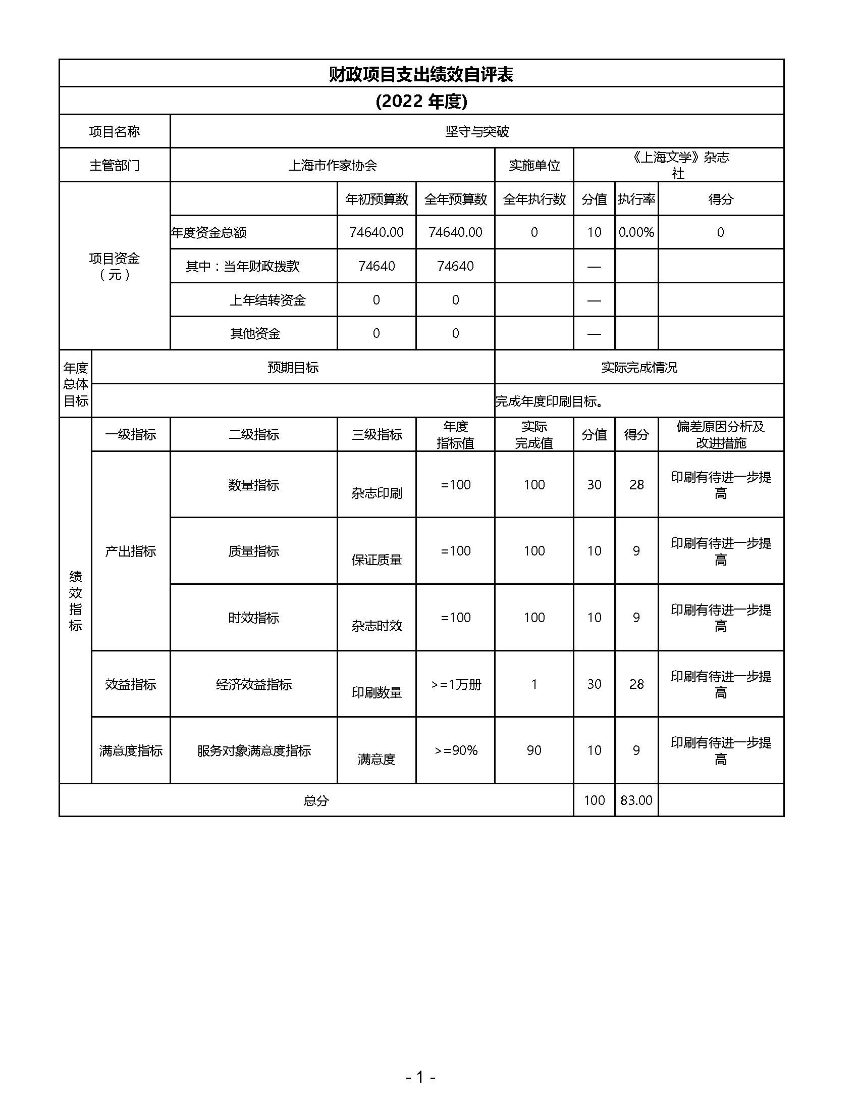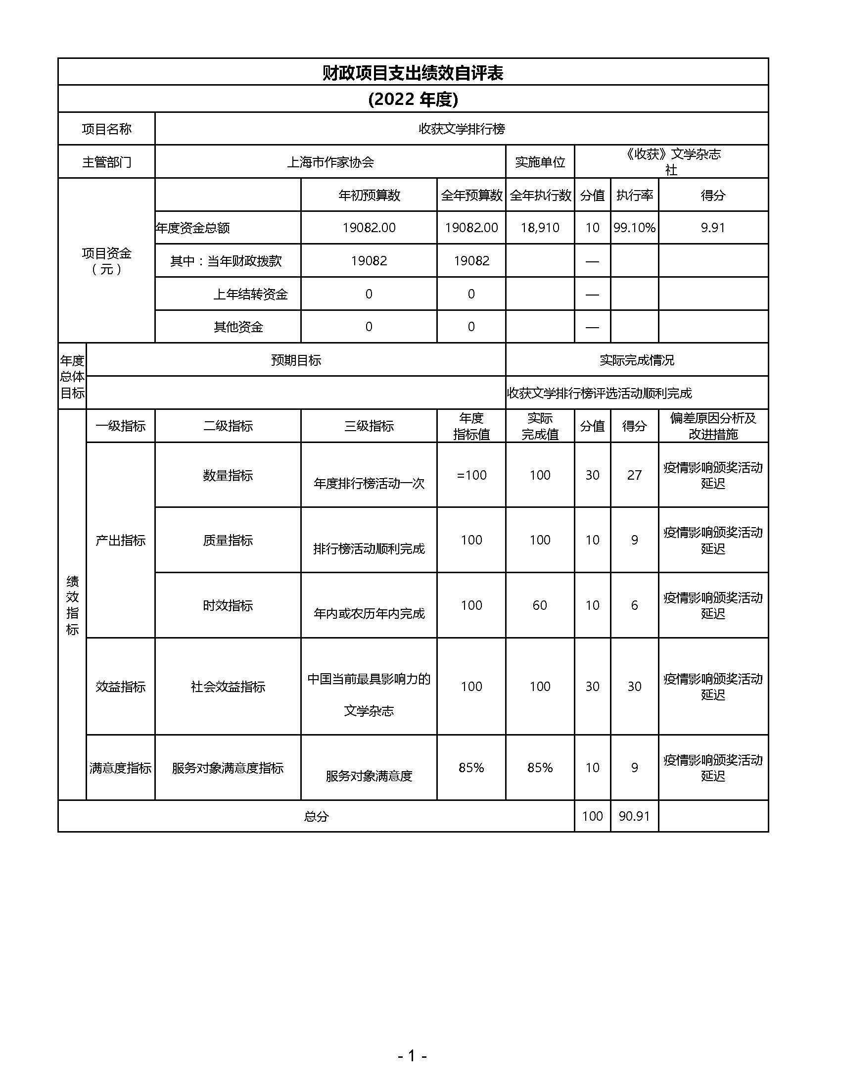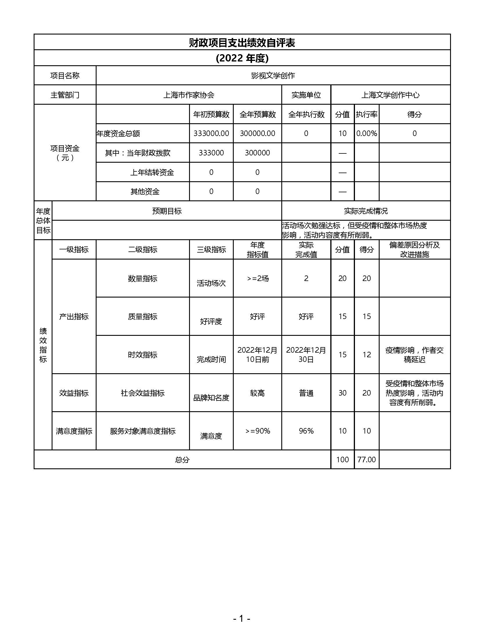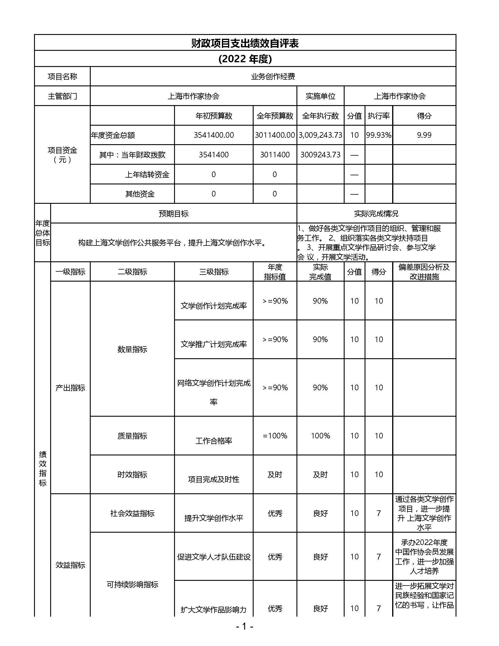 上海文學創(chuàng)作中心2022年度項目績效自評價表