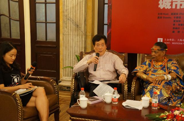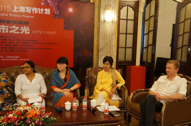 9月12日下午,巨鹿路675號(hào)作協(xié)大廳座無(wú)虛席,2015上海寫作計(jì)劃首場(chǎng)中外作家交流會(huì)在這里舉行。交流會(huì)由上海作協(xié)副主席、作家趙麗宏主持,嘉賓為卡費(fèi)瑞·南比山、喬·鄧索恩、蘇納什、Mama C以及上海作家薛舒。