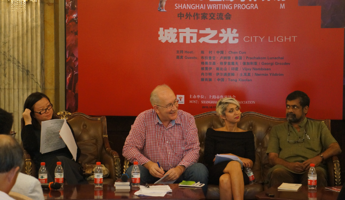 10月17日下午,上海作協大廳舉行了2015上海寫作計劃第三場中外作家交流會,土耳其作家Nermin Yildirim,泰國作家Prachakom Lunachai, 印度作家Vijay Nambisan,保加利亞作家Georgi Grozdev以及中國上海作家滕肖瀾匯聚一堂,分別講述了自己對“城市之光”的理解,上海作協副主席、作家陳村主持了這場交流會。