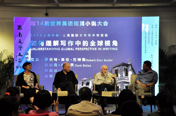 7月15日晚,作為“第十四屆世界英語短篇小說大會”的重要活動之一,第129期思南讀書會請到了美國及加拿大作家克拉克.布萊茨(Clark Blaise)、美國普利策小說獎得主羅伯特·奧倫·巴特勒(Robert Olen Butler)、華裔美國作家李翊雲,與華東師范大學外語學院教授金衡山,四位嘉賓圍繞寫作中的全球視角這一主題,分享他們各自的經歷與理解。