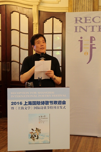 上海作協(xié)副主席、《上海文學(xué)》雜志社社長(zhǎng)、著名詩(shī)人趙麗宏首先代表《上海文學(xué)》雜志社、上海詩(shī)人對(duì)中外詩(shī)人們的到來(lái)表示熱烈歡迎!他說(shuō)在中國(guó)新詩(shī)一百年的時(shí)候在上海舉辦國(guó)際詩(shī)歌節(jié)是一種美妙的姿態(tài),這是對(duì)詩(shī)歌的熱愛,是對(duì)一百年來(lái)前赴后繼、嘔心瀝血的歷代中國(guó)詩(shī)人的致敬。《上海文學(xué)》雜志始終把發(fā)表新詩(shī),推廣、評(píng)價(jià)詩(shī)歌作為辦刊宗旨之一,并特地為此次上海國(guó)際詩(shī)歌節(jié)編輯出版了《上海文學(xué)》國(guó)際詩(shī)歌節(jié)特刊,希望這本特刊能為此次上海國(guó)際詩(shī)歌節(jié)留下美好的紀(jì)念!