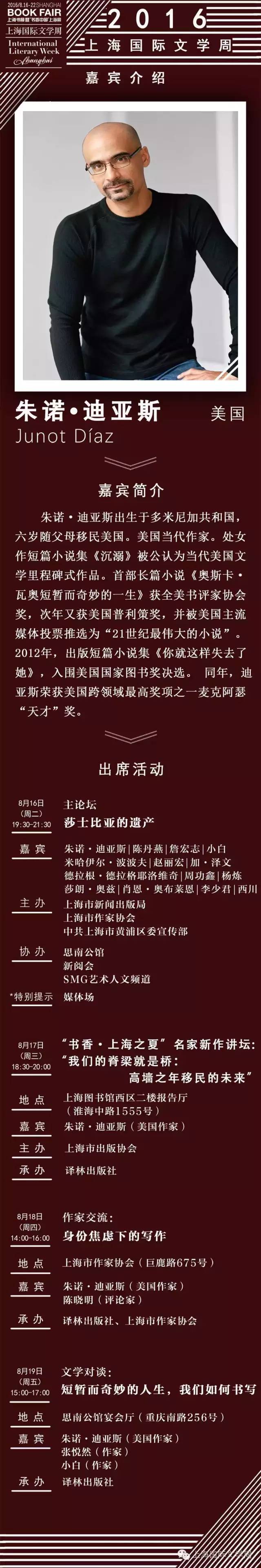 【人物】2016上海國際文學周嘉賓名錄之朱諾·迪亞斯