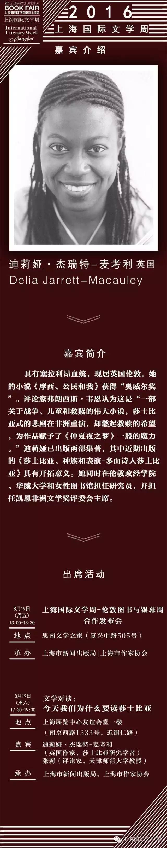 【人物】2016上海國際文學周嘉賓名錄之迪莉婭·杰瑞特-麥考利