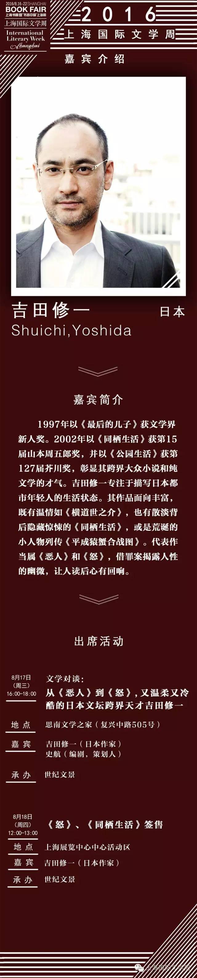 【人物】2016上海國際文學周嘉賓名錄之吉田修一