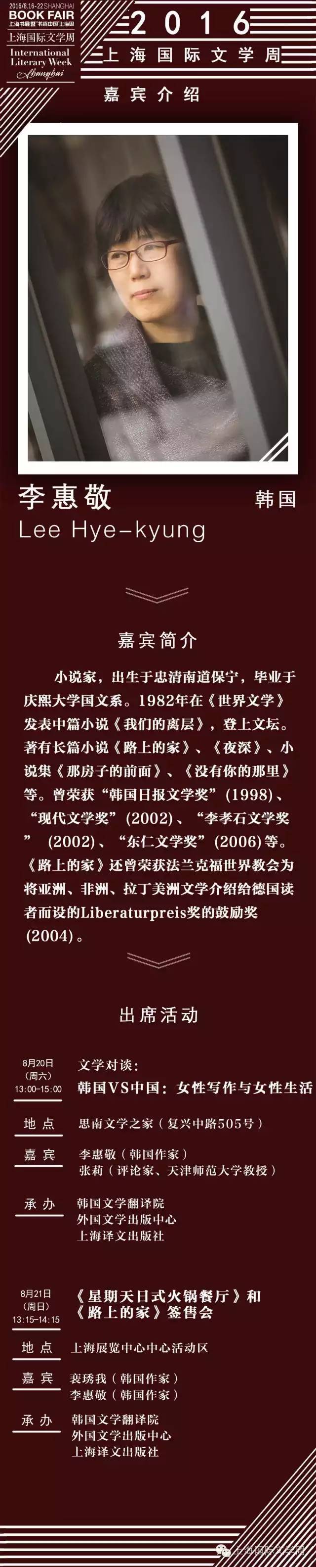 【人物】2016上海國際文學周嘉賓名錄之李惠敬