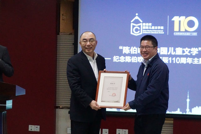 在儀式上,上海新聞出版局黨組書記、局長徐炯與上海世紀出版集團副總裁闞寧輝還進行了“陳伯吹國際兒童文學獎獲獎書系”冠名授權儀式 。中共寶山區委書記汪泓向陳伯吹先生之子、中國科學院院士、原北京大學校長陳佳洱先生贈送“紀念陳伯吹先生誕辰110周年主題論壇活動紀念證書”。儀式由中共寶山區委副書記、區長范少軍主持儀式。