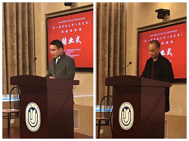 在17日的結(jié)業(yè)儀式上,閱文集團作者語默然和翼書網(wǎng)作者山阜散人代表學(xué)員發(fā)言,他們認(rèn)為通過本期研修班,端正了歷史類網(wǎng)文的創(chuàng)作導(dǎo)向,更加深入地了解了網(wǎng)絡(luò)文學(xué)的發(fā)展形勢,增強了網(wǎng)文創(chuàng)作的理想信念,還收獲了珍貴的同窗友誼。
