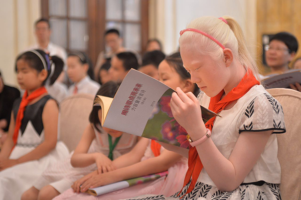 2017年6月3日,上海作家協會,朗誦藝術家在為盲童朗誦詩歌。本文圖均為澎湃新聞記者 韋毅 圖