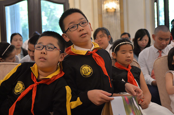 “今天活動有27個學生參加,從一年級的孩子到初高中的孩子都有。表演詩朗誦的有14個孩子,朗誦了兩首詩。學校里有許多社團活動,其中有一個是朗誦組,把喜歡閱讀朗誦的孩子吸收進來,有專業老師指導。今天來參加活動的就是這些平時喜歡朗誦和詩歌的孩子。” 張紅志說。