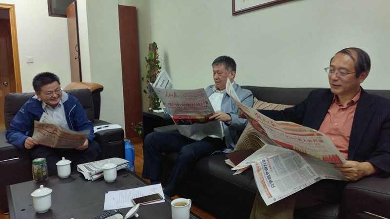 ▲上海作協(xié)黨組成員認真學習十九大報告精神