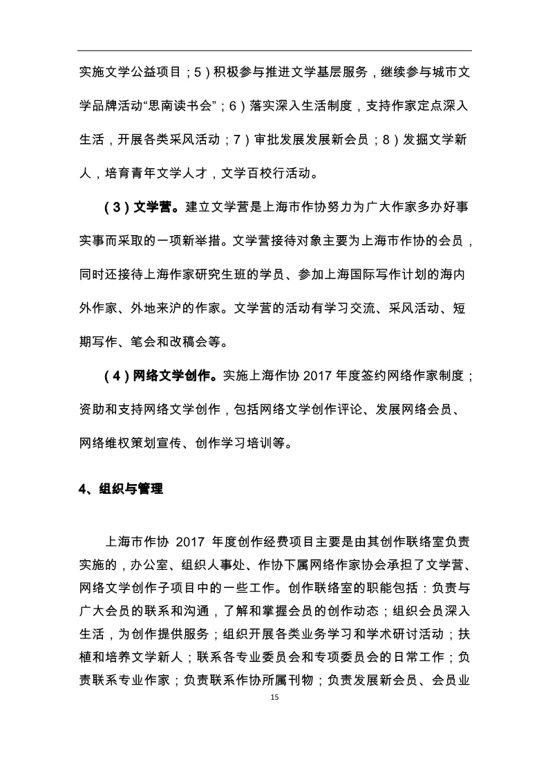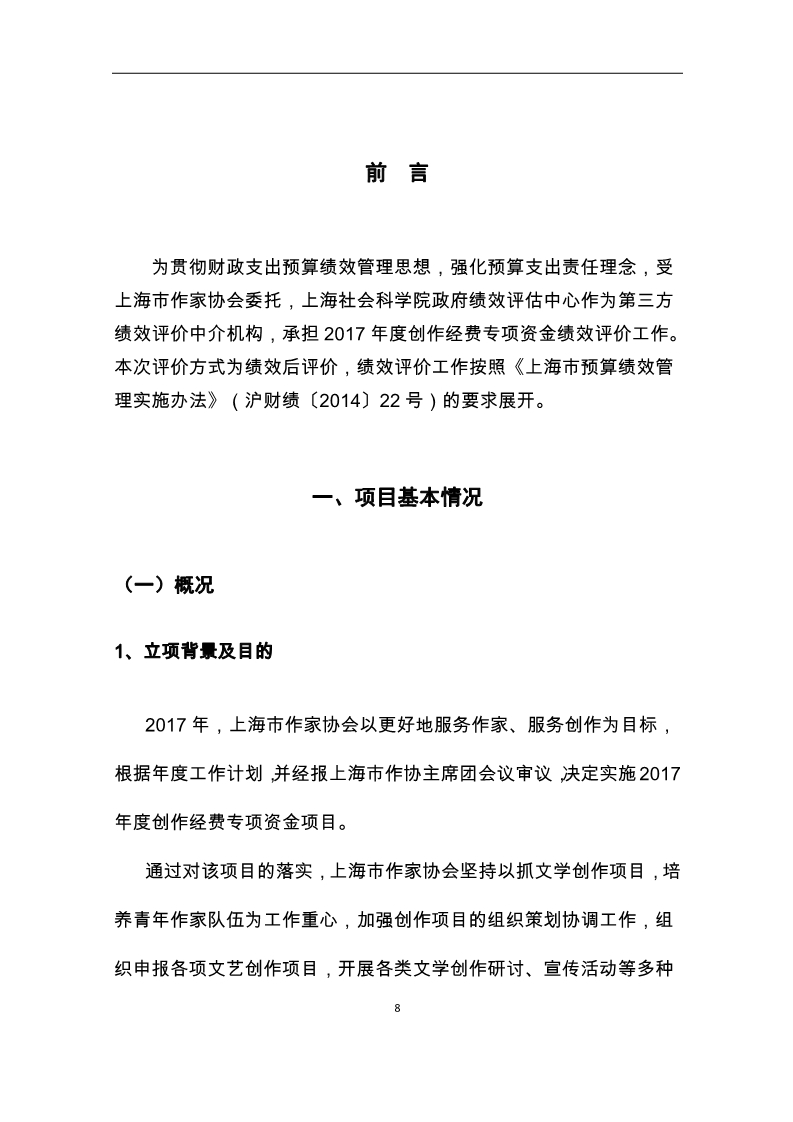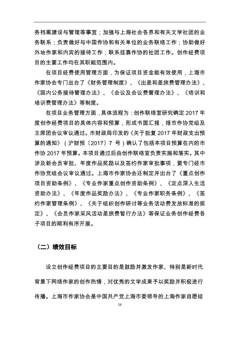 2017年上海市作協(xié)創(chuàng)作經(jīng)費(fèi)項(xiàng)目績效評價(jià)報(bào)告