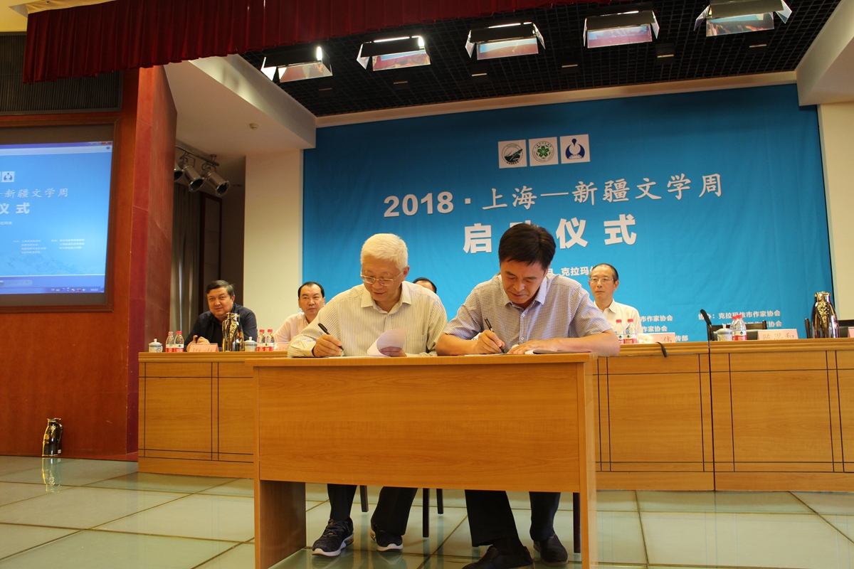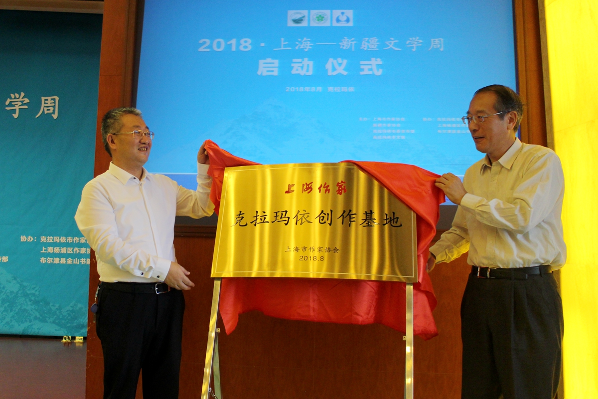 8月31日的2018“上海——新疆文學周”啟動儀式上,“上海作家克拉瑪依創作基地”正式掛牌成立,楊浦區作家協會與克拉瑪依市文聯“結對子”簽約儀式同時舉行。上海作協黨組書記、副主席王偉表示,此次“上海作家克拉瑪依創作基地”掛牌與楊浦區作家協會與克拉瑪依市文聯“結對子”,是滬新兩地作協交流合作的新起點,從原來上海市、新疆維吾爾自治區層面的交流到現在楊浦區、克拉瑪依市層面的交流,雙方合作走向了更深的層次,必定會產生更深遠的影響。新疆文聯黨組書記張新生說,這是跨越四千多公里的相聚,滬新兩地作家將彼此砥礪,攜手共進,在習近平新時代中國特色社會主義思想指引下,為新時代譜寫壯麗的文學篇章,共創“一帶一路”上“各美其美,美人之美,美美與共”的璀璨文學風景。