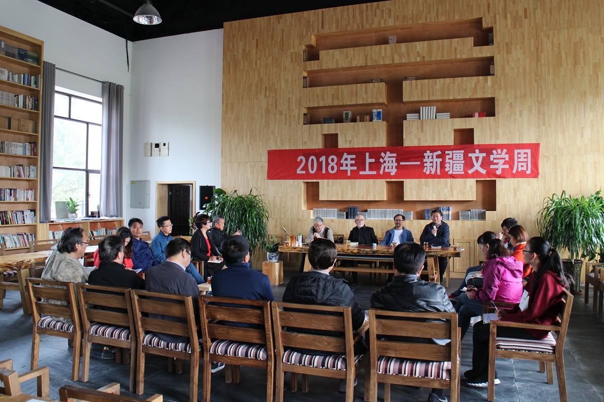 ▲上海作家與新疆作家、文學愛好者參加2018“上海——新疆文學周”金山書院文學沙龍活動。