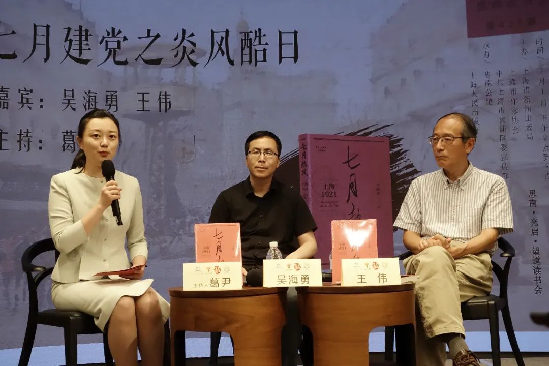 7月1日下午,吳海勇攜其新書《七月熱風(fēng)》與上海作協(xié)副主席王偉做客思南讀書會421期,共同回望102年前一群心懷家國理想青年追逐革命信仰的往事。中共二大會址紀(jì)念館綜合管理部副主任葛尹擔(dān)任主持。