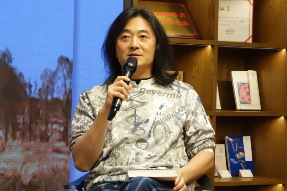 周小平解釋,書中的很多細節是他自己的經歷、個人的回憶,,像是自傳體,但也會有很多問題可以去思考和探討。他談到點畫,“點的符號,一塊一塊形成不同顏色時,俯視看它時,就是一塊一塊顏色,當細節放大無數倍時就是一個點,像沙粒一樣的點。"