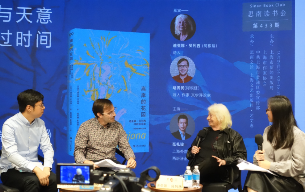 10月28日下午,阿根廷詩人迪亞娜·貝列西(Diana Bellessi)攜新書《離岸的花園》與阿根廷詩人馬濟(jì)民、上海外國語大學(xué)西班牙語教師張禮駿一同做客思南讀書會(huì)第433期,與讀者共讀《離岸的花園》,一同走進(jìn)貝列西豐富經(jīng)歷組建的詩歌世界。活動(dòng)由張禮駿擔(dān)任主持。