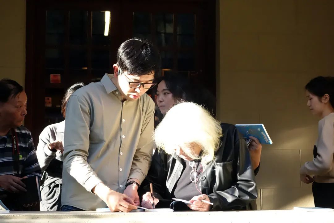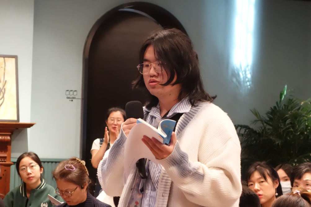 身為西班牙語教師的張禮駿向在場(chǎng)負(fù)責(zé)傳譯的上海外國語大學(xué)學(xué)生致意,他提到,詩人之外,貝列西也是一位致力于將英文詩歌帶到西班牙語世界的優(yōu)秀譯者,并向她請(qǐng)教對(duì)中國的西班牙語學(xué)生從事翻譯事業(yè)的建議。結(jié)合自己翻譯一位美國科幻作家作品的經(jīng)歷,貝列西回答,“我認(rèn)為是激情所驅(qū)使,如果有愛,有興趣的話,就一定要去做。”