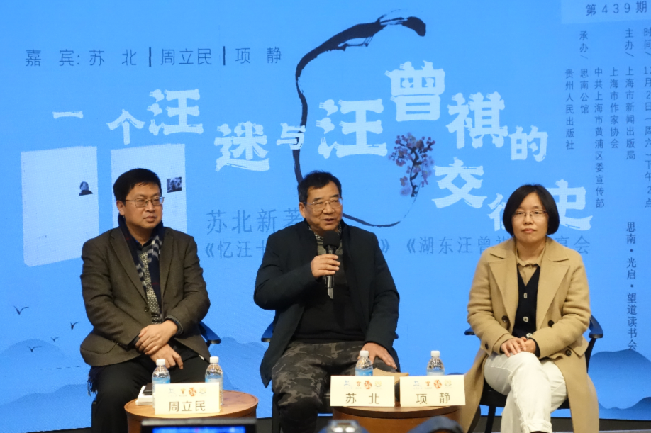 周立民笑言,蘇北提到汪曾祺便會(huì)滔滔不絕,這是蘇北對(duì)于汪曾祺長(zhǎng)久以來的喜愛。周立民說,蘇北的這兩本書讓我們靠近汪曾祺。蘇北以“業(yè)余作家”的身份,抓住汪曾祺生活里的細(xì)節(jié),片段、性格,結(jié)合自身感受,從一個(gè)非學(xué)術(shù)的角度,敘寫了一個(gè)有血有肉的,有真情實(shí)感的汪曾祺老先生。不同于學(xué)者書寫的,蘇北書寫的汪曾祺是去符號(hào)化的。不僅如此,蘇北筆下也呈現(xiàn)出了不同視角下的汪曾祺及汪曾祺交往史,是非有心人不能做到的。