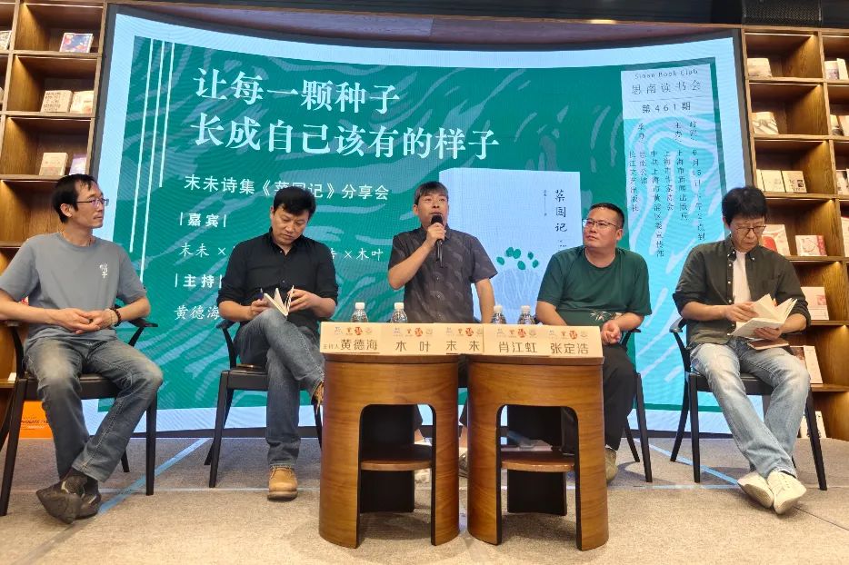 6月15日下午,詩人末未攜其詩集《菜園記》與作家肖江虹、評論家張定浩、評論家木葉一起做客思南讀書會第461期,談論一塊菜地如何催生了詩歌,以及末未寫詩的性情和選擇。評論家黃德海擔任主持。