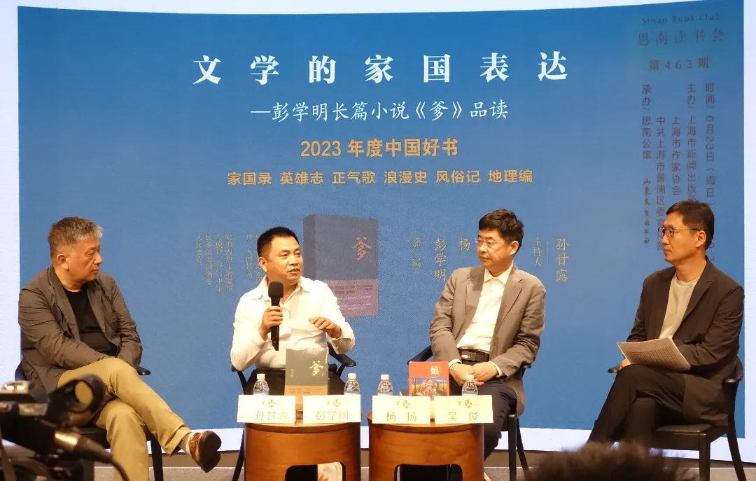 6月23日晚,中國作協(xié)創(chuàng)聯(lián)部主任、小說家彭學明從北京遠道而來,與上海交通大學教授、文學評論家、學者吳俊,上海作協(xié)副主席、文學評論家、學者楊揚共同做客第463期思南讀書會,在夏夜里帶領讀者們品讀他的新作——《爹》。上海作協(xié)副主席、作家孫甘露主持本次讀書會。