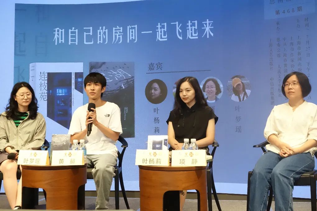 青年作家黃昶、葉楊莉與評論家項靜做客活動上半場,編輯葉夢瑤主持。上半場的主題是“和自己的房間一起飛起來”,這是華東師范大學教授黃平在葉楊莉短篇小說集《連枝苑》的序言中提到的一句話,意在呼吁年輕的寫作者同自己所處的空間一道完成“飛起來”的審美超越。