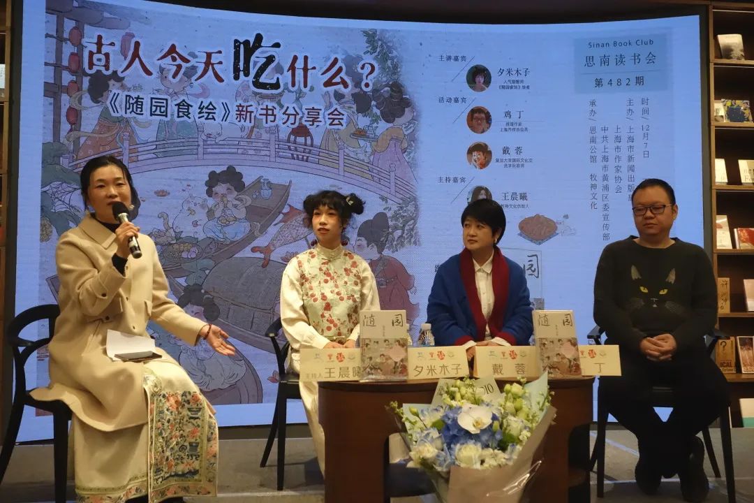 12月7日下午,插畫師夕米木子攜新書《隨園食繪》做客思南讀書會第482期,與復旦大學國際文化交流學院教師戴蓉、懸疑作家雞丁一起,為讀者奉上視覺與味覺的雙重盛宴。牧神文化創始人王晨曦擔任主持。