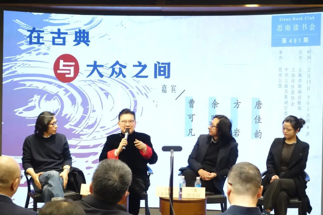 2月15日下午2時,思南讀書會第491期,暨思南讀書會十一周年特別活動在思南文學之家舉行,活動現場發布了“思南書單2024”,上海廣播電視臺主持人曹可凡、同濟大學人文學院副教授余明鋒、醫生唐佳韻分別作為此次書單的跨界組、專家組、讀者組評委代表,進行題為“大眾與古典之間”的閱讀對談,《思南文學選刊》副主編方巖主持。