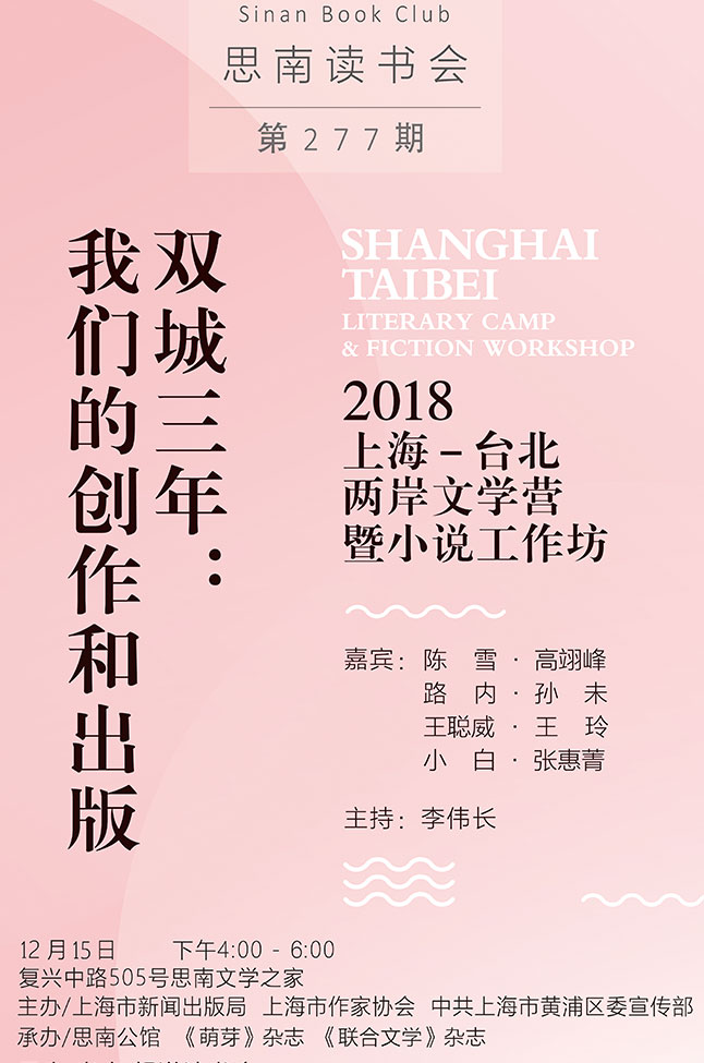 嘉賓:陳雪、高翊峰、路內、孫未、王聰威、王玲、小白、張惠菁
