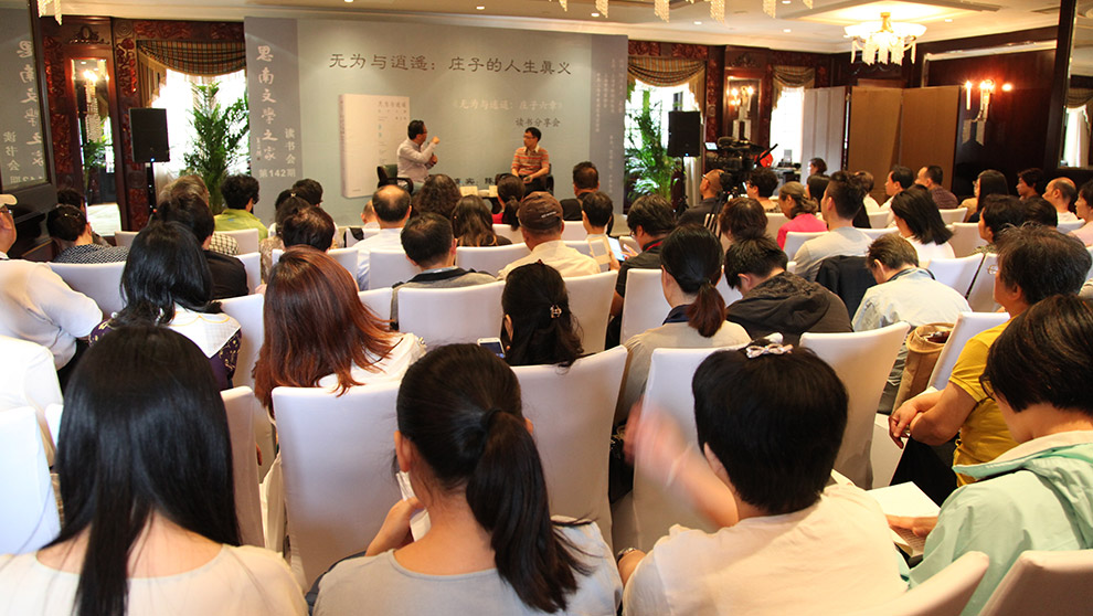 “天”是莊子思想的中心。陳引馳談到,“蔽于天而不知人”是荀子對(duì)于莊子的評(píng)價(jià)。此處的“天”具有多重含義,不等同于現(xiàn)代社會(huì)所說(shuō)中的“物質(zhì)天”。“天”的抽象性在于“天然”、“自然”,陳引馳解釋道,“莊子對(duì)人間、對(duì)社會(huì)有關(guān)懷,他用天然來(lái)統(tǒng)攝所有問(wèn)題。”他談到,比如《逍遙游》中,“逍遙”的核心便是能夠與天道合一。“乘天地之正,六氣變化”,天地的正就是本,人和自然的變化、世界的運(yùn)動(dòng)完全合二為一。真正自然的人,符合“天”的人是真正逍遙的。對(duì)于社會(huì),也可以用“天”的道德貫穿,比如“無(wú)為”的理念,便是順乎自然天道,不去人為地運(yùn)作。