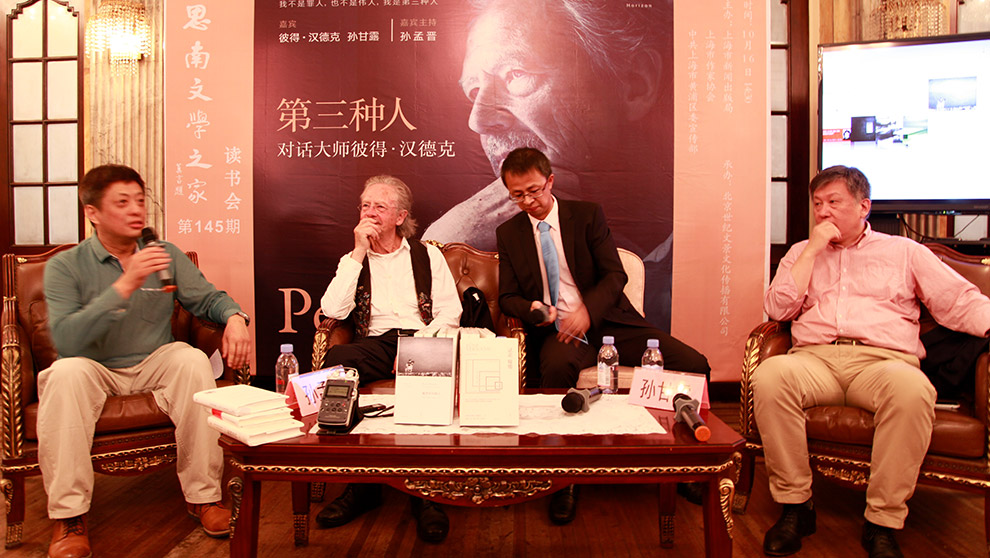 他談到,每一個語言和每一個國家都有不同的表現參數,比如俄羅斯文學完備史詩的意義和色彩,而美國的文學離歌唱會更近一些,但世界上不同語言的國家在實際上共享著同一種文化,即靈魂的文化。這種世界文化不同于國際性文學,漢德克認為,文學的前提是自我,而今日所有的國際性文學都喪失了自我,因而也不存在讓人震撼的民族力量。