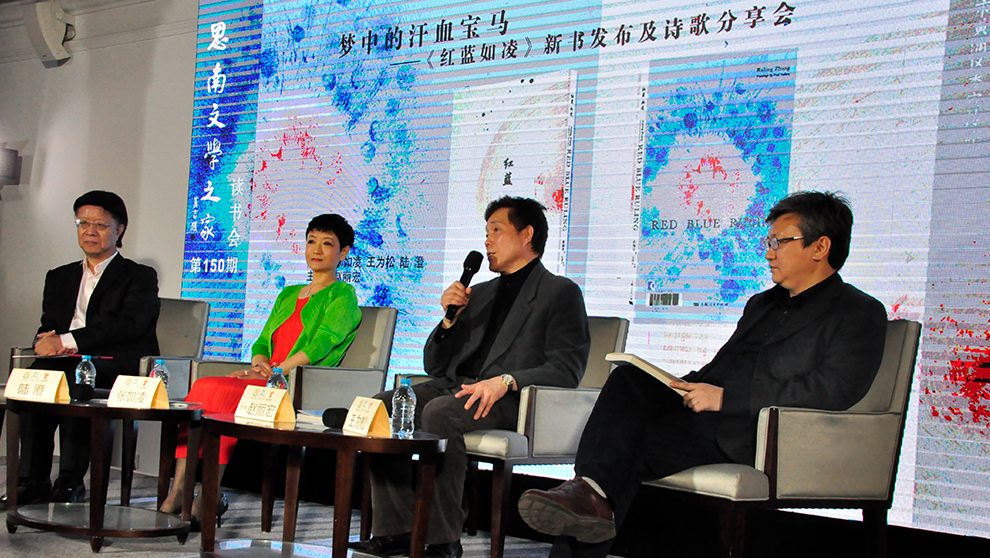 《紅藍如凌》由上海人民出版社出版,其插圖由法國著名建筑大師安德魯傾情繪制,是一本設計精美的中英文對照的詩集。上海人民出版社社長總編輯王為松介紹,三年前在思南文學之家曾舉行過張如凌《法國藍》《中國紅》的新書發布會,《紅藍如凌》是其第三本詩集,詩人受過中國文化的熏陶,游歷世界、長期生活在法國的經歷使得這本詩集很好地融合了兩國文化。作家趙麗宏在新書發布前讀過張如凌的詩歌并做了序,他說:“這本書的文字非常有意義,是好的詩,真的感情,它有深刻的思想、博大的情懷、幽深的思緒,對故土、親人、人生都有深刻的見解。”