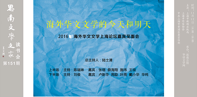 今天讀書會的嘉賓,是來滬參加2016海外華文文學上海論壇的海外作家。這個論壇是上海作家協會及其主管主辦的華語文學網和復旦大學華文文學研究中心共同創設的平臺。海外華文文學有一百多年的歷史,到今天海外華文文學已經發展成為一個世界性的現象。在宋代流傳著一句話:有井水的地方就有柳永的詞;今天我們可以說,有海水的地方就有華人,有華人的地方就有華文文化,就有華文文學。數以千計的海外華文文學作家,用漢語在海外寫作,既寫中國故事,也寫國外的生活,用我們民族的文化和所在國家的文化對話,既弘揚了中華民族文化,又促進了不同文化間的交流,他們的作品豐富了中華文化的寶庫,也豐富了世界文化的寶庫。借著這個平臺,邀請他們來參加論壇,在論壇中作家與批評家直接對話,通過對話直接交流,增進了解,增強友誼,同時促進創作品質的提升。今天中華民族已經逐漸從世界的邊緣走向世界舞臺的中心,在這樣的背景下,世界華文文學的明天將會更加燦爛,這也是我們共同的希望…… 【詳情】