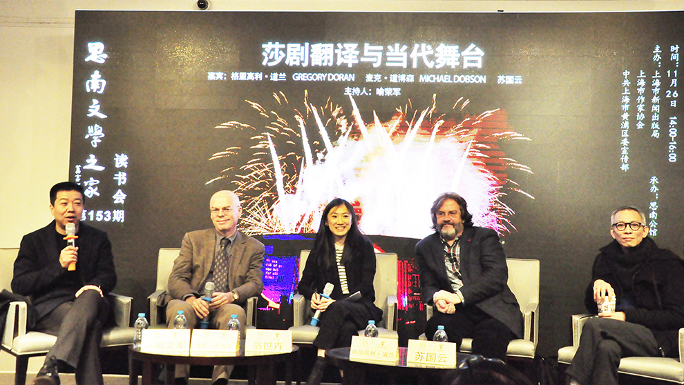 蘇國云談到在翻譯《亨利五世》時,自己主要從戲劇角度出發,而非文學角度。他以人物為核心,為廣大的中國觀眾去呈現莎士比亞如何寫歷史劇的。塑造人物,不光是看眼前的英國君王如何,也可以聯系到如何變為一個君王,如何帶領一個國家。他心里想什么?害怕什么?這些元素在整個劇本中皆可通過現代的處理呈現。“這一次翻譯和當代的處理,是一個真正非常微妙的結合。”蘇國云總結道。