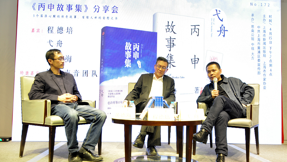 4月15日下午的思南讀書會第172期現場,弋舟帶著新作《丙申故事集》,與程德培、黃德海兩位評論家一同探討寫作心得。側耳聲音團隊成員何卿現場朗誦《丙申故事集》片段。