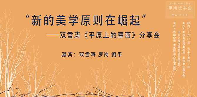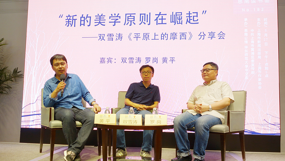 5月27日下午三點,80后青年作家雙雪濤攜中短篇小說集《平原上的摩西》做客思南文學之家,華東師范大學教授羅崗、黃平圍繞此作與作家展開對談,從文學的角度討論小說創作中所展現的“新的美學原則”。