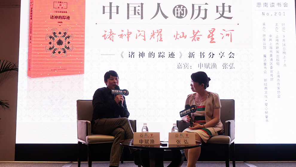 張弘介紹到申賦漁有著獨特的生活背景:曾因記者的工作需要,長期旅居巴黎。對此,她有所疑問,眼前是現代西方之景的申賦漁,為何會投身于中國古代文化的書寫。申賦漁回憶當年因為工作的原因接觸到許多華人,并與他們有進一步的交流。在溝通中,他發現華人們普遍有著迫切尋根的焦慮。因為他們的孩子大多出生在國外,從小精通外語也掌握漢語,但唯獨對中國文化的了解嚴重匱乏。這些華人極其渴望孩子們能有健全的知識儲備,同時也希望能彌補自身的文化缺失。