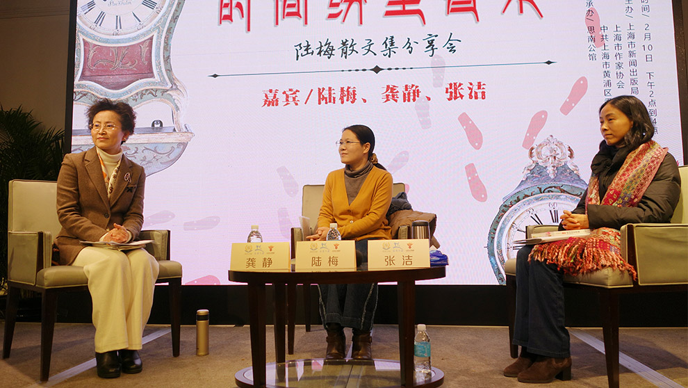 龔靜笑稱她們三人“在寫作觀、審美觀以及人生感念方面有蠻多相通之處,我覺得這是作為文人之間非常好的一種感遇”。她十分認同陸梅的寫作觀,在龔靜看來,在寫作的過程中是對自己進行了梳理,也是對自己的生命有所交待與完善。在這個快速的時代,寫作者便用寫作來妥善安頓自己.