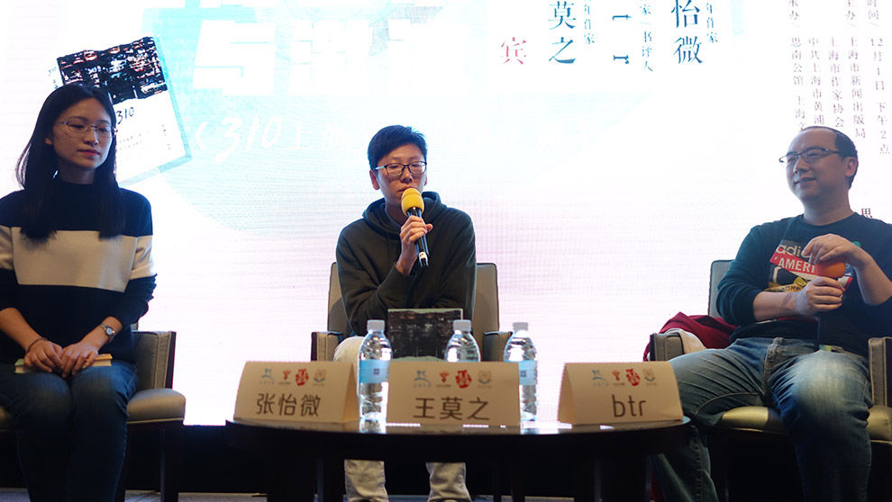 《310上海異人故事》是王莫之第一部概念短篇小說集,書名中的“310”引起很多讀者的好奇。王莫之解釋說,以此為名的緣由是來自一位朋友的想法,友人曾打算開一家咖啡館,就叫“310”,身份證“310”開頭的八折優惠。咖啡館雖然沒有實現,但是“310”卻一直“營業”在王莫之的腦海里。