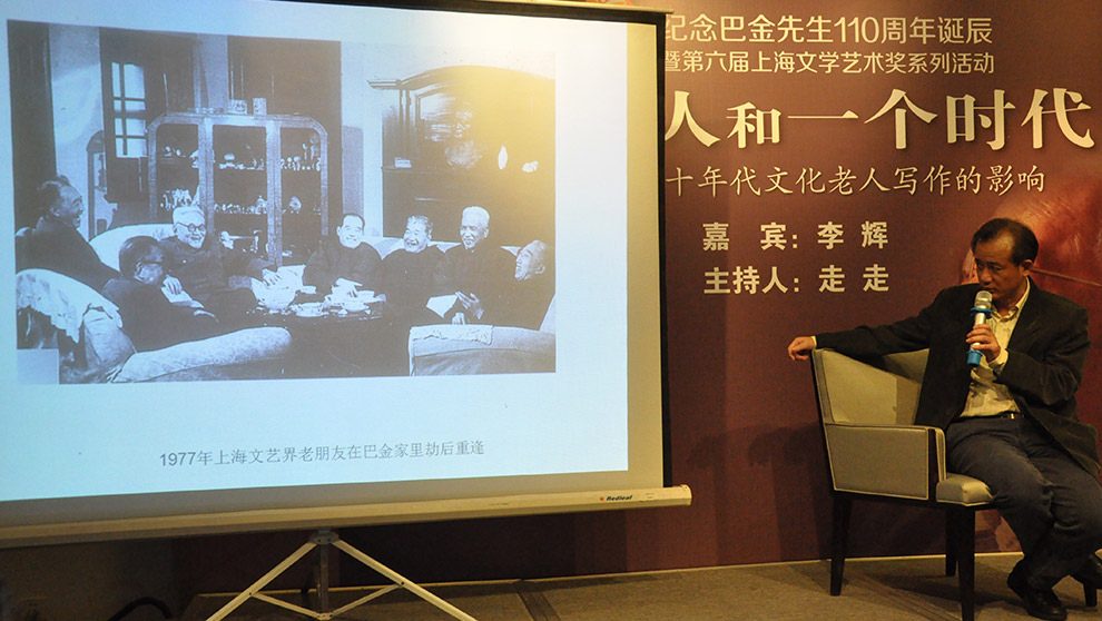昨天,作為第六屆上海文學藝術獎和紀念巴金誕辰110周年系列活動之一,思南讀書會邀請巴金研究者、作家李輝講述“一個人與一個時代:巴金對八十年代文化老人寫作的影響”。